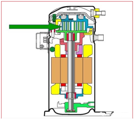 渦旋盤損壞:一般表現(xiàn)為能聽到壓縮機(jī)內(nèi)部明顯的金屬撞擊聲,這是渦旋盤被擊碎后的金屬碎片相互撞擊或與壓縮機(jī)殼體撞擊的聲音。