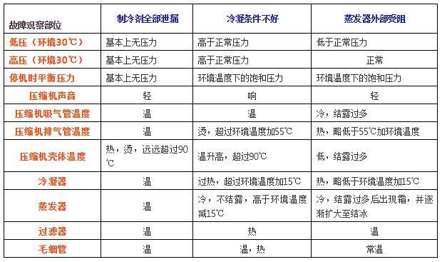 Ø制冷循環(huán)系統(tǒng)泄漏。