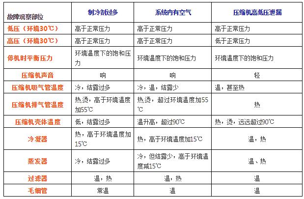 Ø制冷循環(huán)系統(tǒng)堵塞。