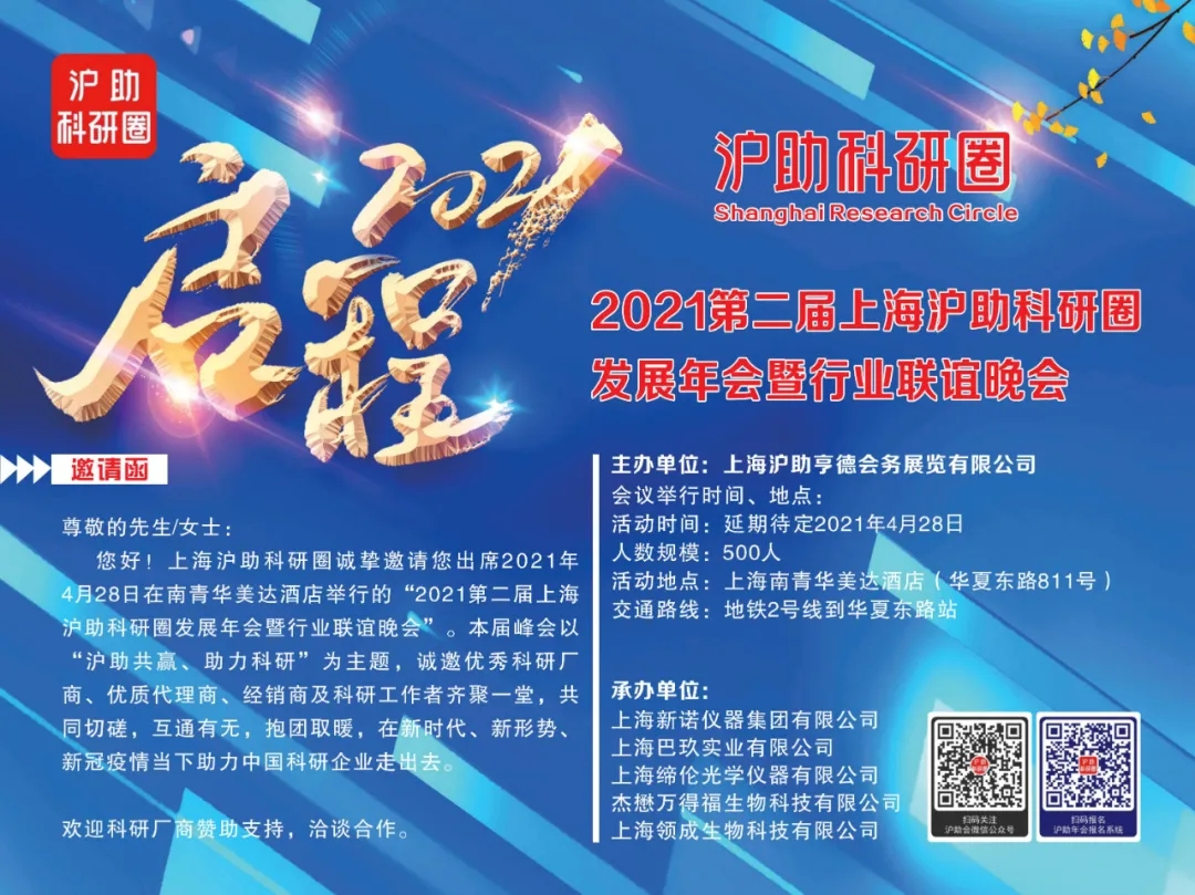 2021第二屆上海滬助科研圈發(fā)展年會暨行業(yè)聯(lián)誼晚會定于2021年4月28日在上海南青華美達酒店舉行。本屆峰會以“滬助共贏、助力科研”為主題,邀請了優(yōu)秀的科研廠商、優(yōu)質(zhì)代理商、經(jīng)銷商及科研工作者齊聚一堂,共同切磋,互通有無,在新時代、新形勢、疫情當下助力中國科研企業(yè)走出去...