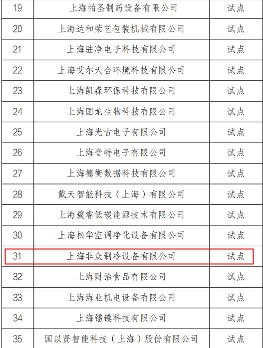 上海非眾制冷設備有限公司入選2022年度“松江區專利工作試點企業”