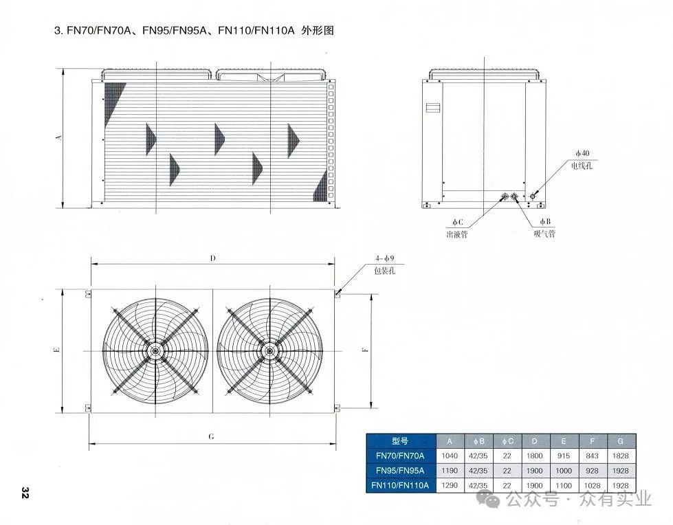 風冷冷凝器選型計算主要參考載體房間的規格參數以及所選用的制冷機組大小等因素,冷凝器型號除根據冷凝器廠家提供樣本選型外還需參考工程經驗進行計算,以下為上海眾有實業有限公司的技術員整理冷凝器計算經驗總結給廣大用戶供參考。