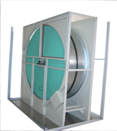 同時,在再生區域,另一路空氣先經過再生加熱器后,變成高溫空氣(一般為100~140度)并穿過吸濕后的轉輪,使轉輪中已吸附的水份蒸發,從而再生空氣因水份的蒸發而變成濕空氣,同時溫度下降;之后,再通過再生風機將濕空氣排除到室外。