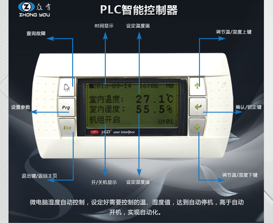 新一代精密機房專用空調的控制系統具有多種先進功能: