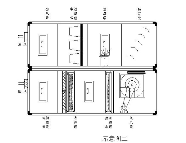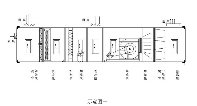 本段起過渡段的連接和機組內部檢修照明用。在過濾段前,表冷段、加熱段、消聲段前后均須設中間段.